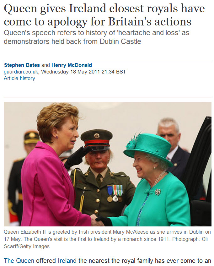 More here: http://www.guardian.co.uk/uk/2011/may/18/queen-ireland-apology-britains-actions