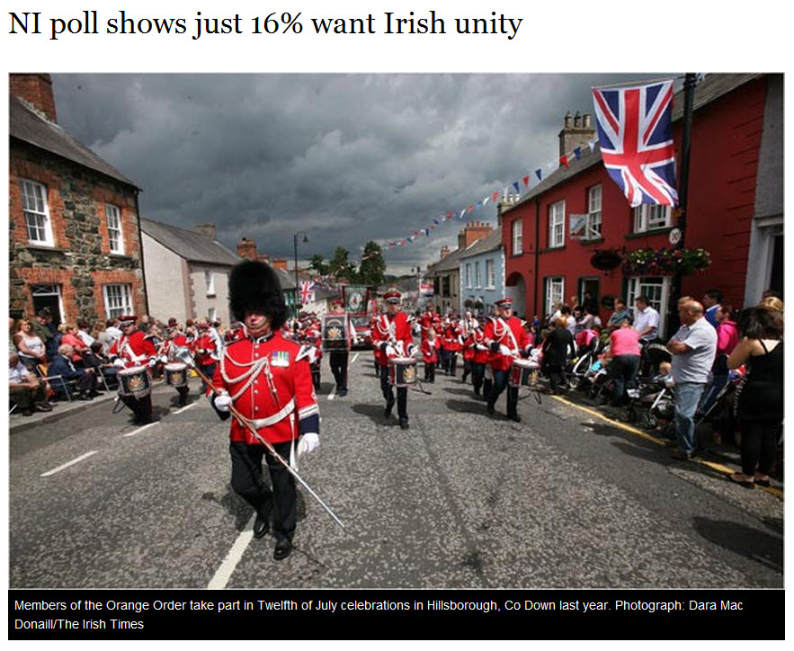 The poll has ben hailed as ‘another’ nail in the coffin of Irish Unity by the usual suspects. Over in the Guardian Henry McDonald writes: