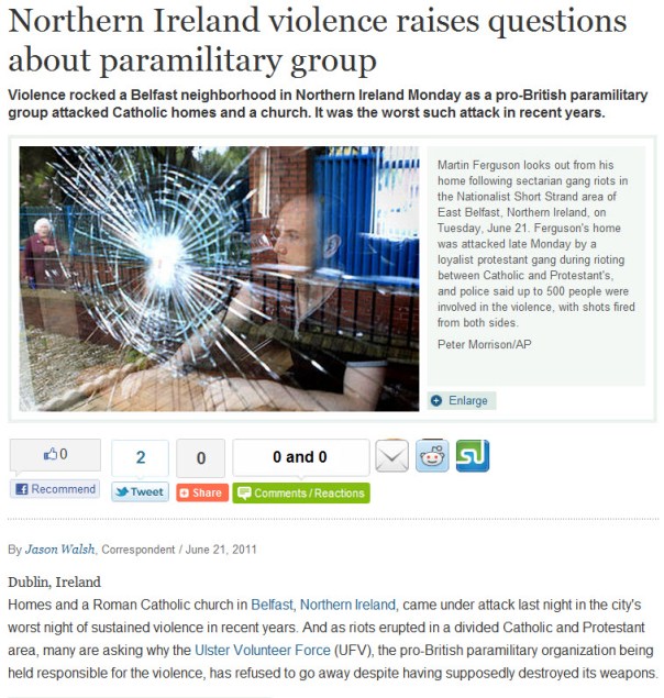 Excellent reporting from Jason Walsh in the CS Monitor on yesterday’s UVF-led rioting in Belfast, asking the questions you’re unlikely to hear asked by most Irish and British journalists.