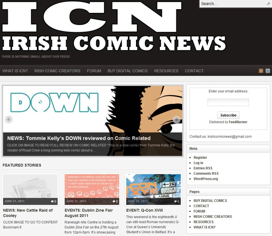 Some good news for Ireland’s small but loyal army of comic fans. A new dedicated comics’ site, ICN (Irish Comics News) is now up and running. Lots of interesting news pieces, articles and links featuring comics and graphic novels. Hopefully the site can take on a strong Irish flavour – including in the native tongue.
