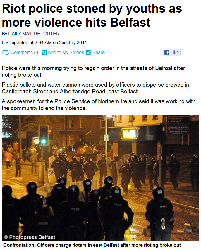 ‘Police were this morning trying to regain order in the streets of Belfast after rioting broke out.