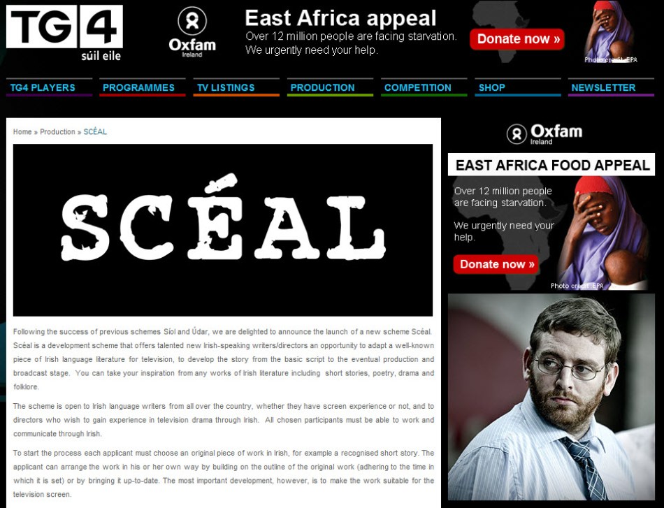 ‘Scéal is a development scheme that offers talented new Irish-speaking writers/directors an opportunity to adapt a well-known story from Irish language literature or folklore towards a half hour short film. The scheme is following from the success of previous schemes ‘Síol’ and ‘Údar’.