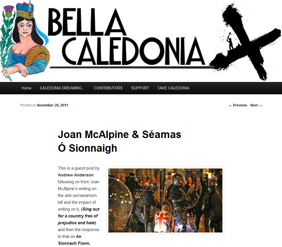 However, it turns out this is not the end of the matter. Now Andrew Anderson, over at the Scottish nationalist media site Bella Caledonia, has used my article criticising Joan McAlpine as a jumping off point to address the more important issue of the anti-sectarian bill itself. However he has done so with some unfortunate misinterpretations of my original posting.