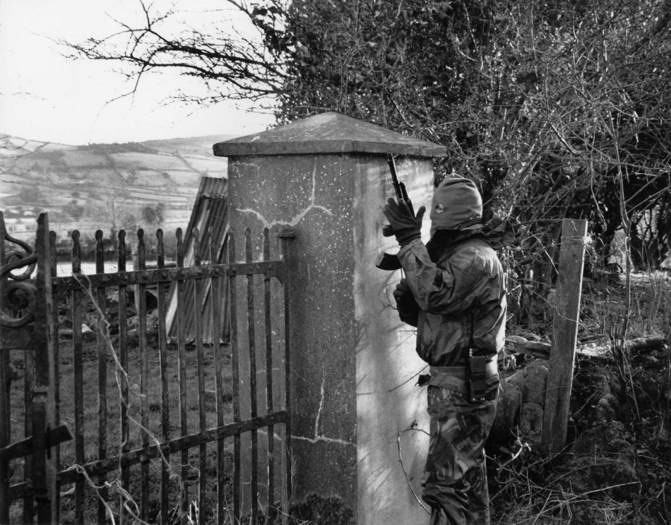 A Volunteer of the Irish Republican Army on active service in the British Occupied North of Ireland, armed with an American-supplied M16 assault rifle, early 1980s