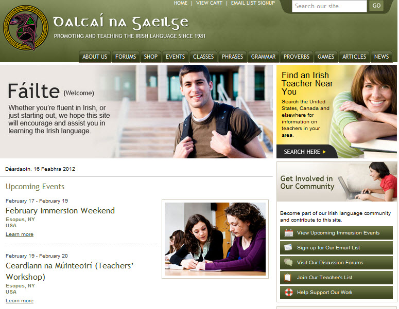 For general enquires and help with the Irish language the now famous online discussion board Daltaí na Gaeilge is second to none. It has been helping people learn Irish since 1981 and was probably one of the first Irish language groups to go online. An incredible feat for an organisation that is in fact based in the United States and Canada and not in Ireland! Its forums are a legendary and any enquirers generally receive a warm welcome. It also has the added advantage of providing information on language courses throughout North America and beyond.