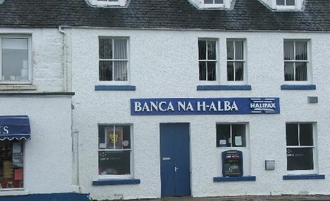 Ironically, the Fort William branch – like so many in the Highlands and islands – proudly emblazons its Gaelic name, Banca na h-Alba, in huge lettering on the side of its 125-year old premises on the town’s High Street.