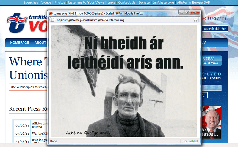 Jim Allister, that infamous throwback politician from the British Unionist minority in the north-east of Ireland, is kicking off again at the thought of those who speak the indigenous Irish language being granted equal rights under the law with those who speak the English tongue. From the Newsletter: