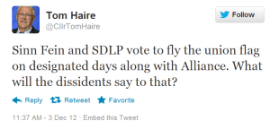 Tom Haire of the DUP issues a tweet in a crude attempt to draw a reaction from Resistance Republicans?