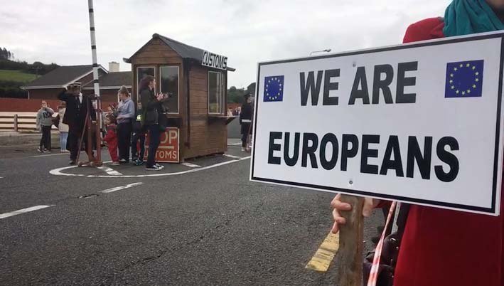 On Saturday afternoon up to a thousand people attended the first in a series of demonstrations in the north of Ireland to protest the possible effects of the United Kingdom’s intention to decouple itself from the European Union, a process which may lead to the imposition of a “Brexit border” between the UK-administrated Six Counties and the rest of the island. Rallies were held in Bridgend (between the counties of Donegal and Derry), Lifford Bridge (between Donegal and Tyrone), Belcoo and Aghalane (Fermangh and Cavan), Moybridge (Tyrone and Monaghan), and Carrickcarnon (Louth and Armagh). Organised by a new lobby group, Border Communities Against Brexit, local politicians and business leaders expressed profound opposition to the rolling back of the “soft reunification” witnessed in the country since the culmination of the Irish-British peace negotiations of the 1990s and early 2000s.