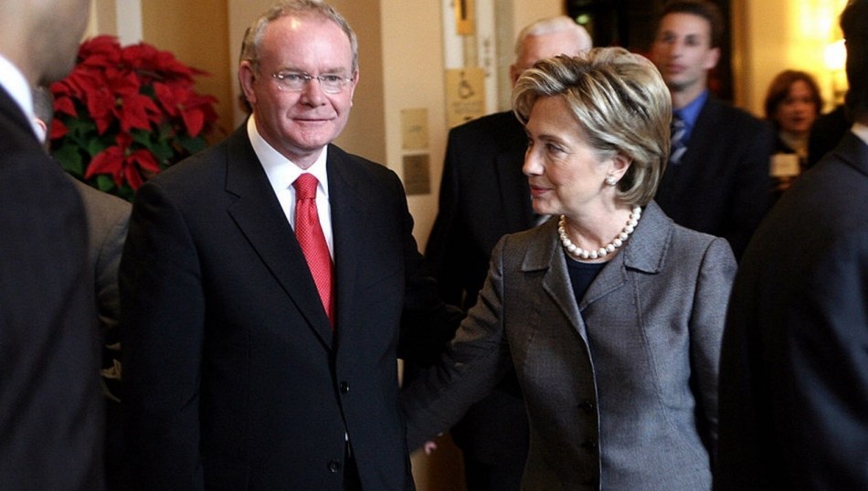 Agreed. As someone who grew up on the “loyalist” side of the fence, and was indoctrinated with that nonsense, even I was shocked to see McGuinness shaking hands with the queen. The first thing that popped into my head when I saw that image was “traitor”. It was then that I realised that Ireland is firmly in the palm of the British, the spectacle that is presented to us is a façade masking the true nature of who’s in control. And the Clinton’s are absolute scum.