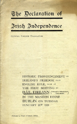 The Declaration of Independence adopted by Dáil Éireann, Dublin, Ireland, 21st January, 1919.
